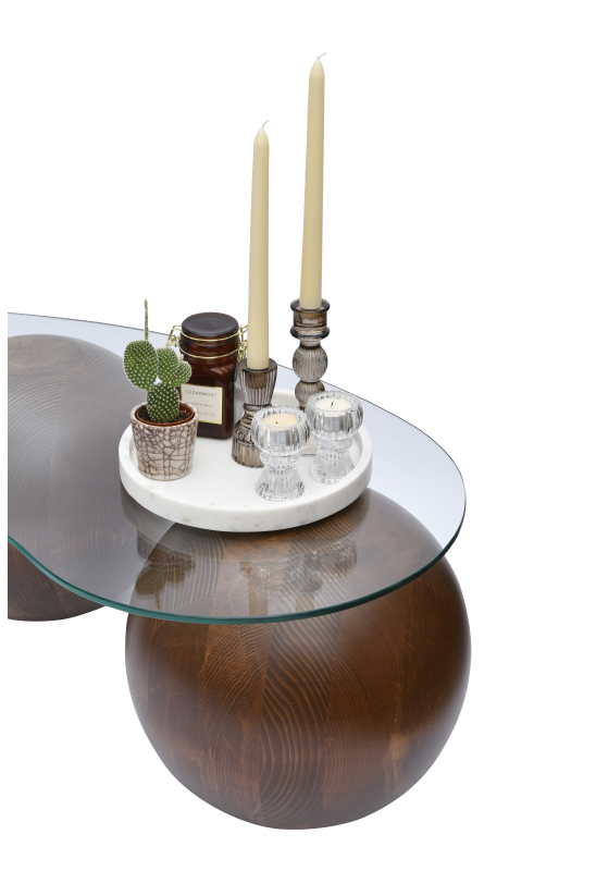 Sadece Ceviz ahşap toplar satın alabilir veya camlı Ceviz top sehpa takımı satın alabilirsiniz.